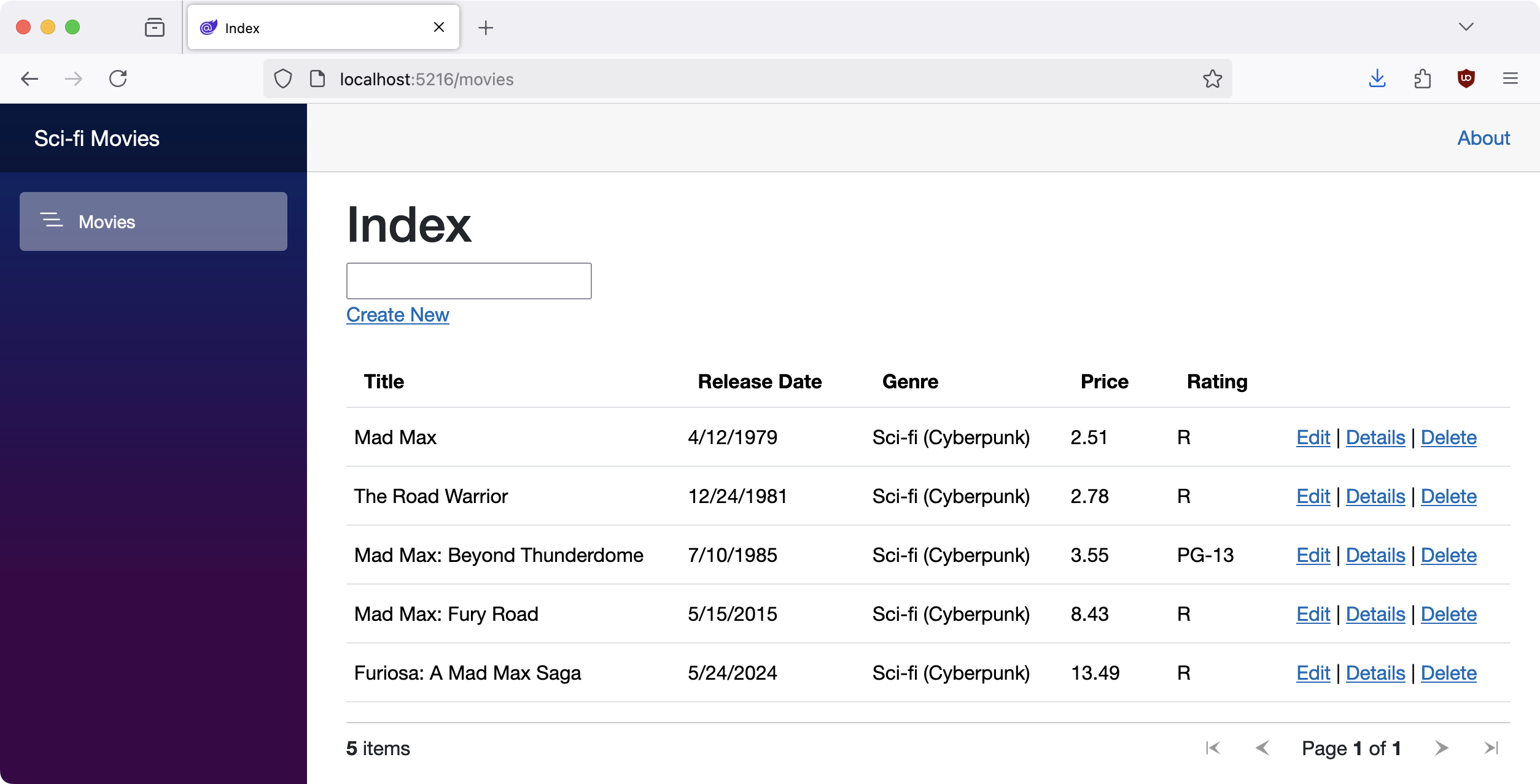 Öffnen Sie die Applikation nun unter der ausgegebenen Adresse http://localhost:5216.