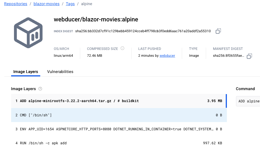 docker push webducer/blazor-movies:alpine